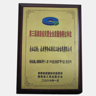 第三界湖南省民營(yíng)企業(yè)質(zhì)量信得過(guò)單位